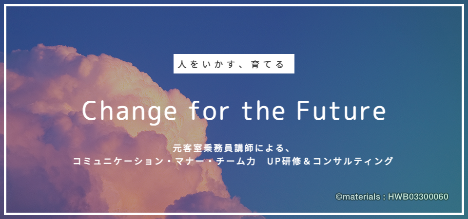 元客室乗務員に学ぶ、心通うおもてなし。講演研修の実績多数で様々な業種と職種にご対応いたします。 |